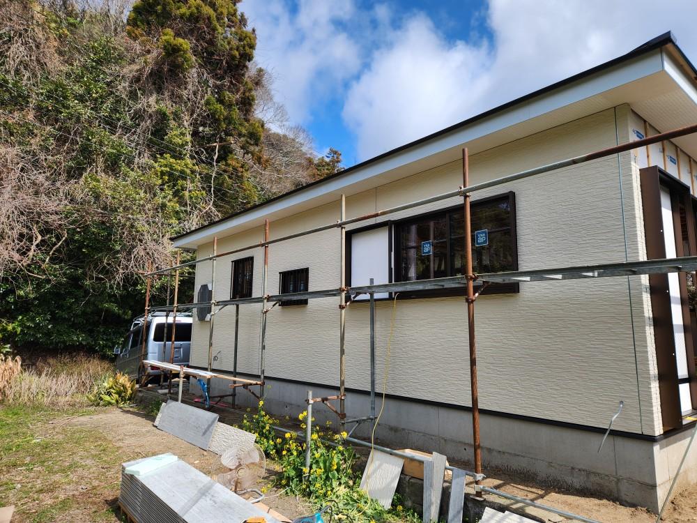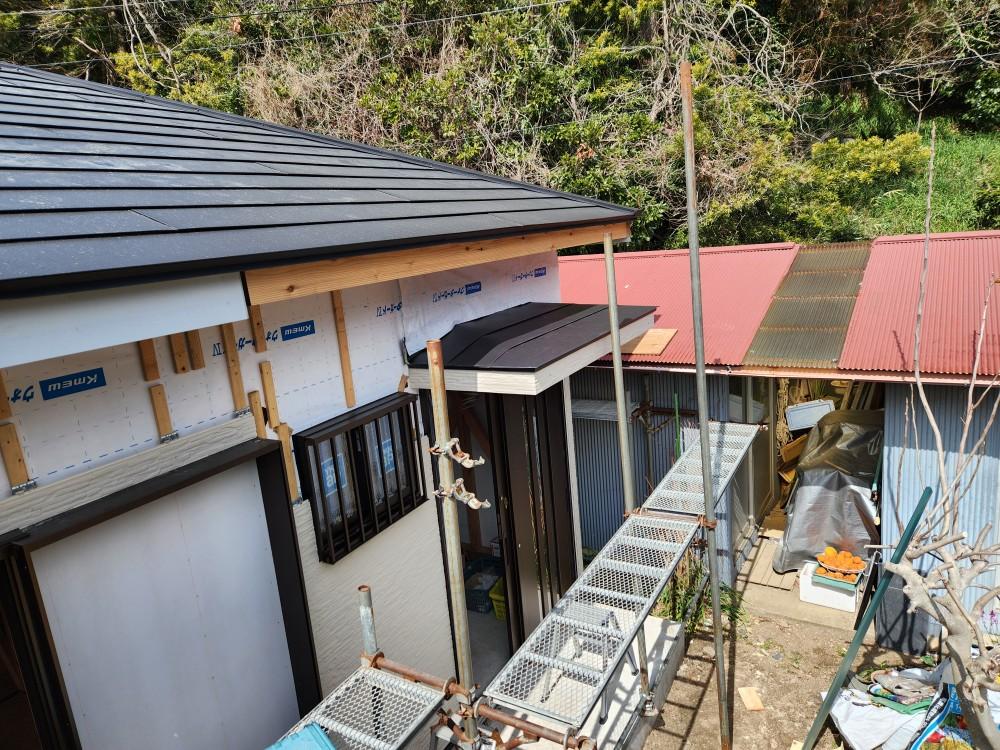 先日上棟しました物件の屋根板金工事終りまして、外回りがあらましになり、一安心です。